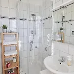 Gemutliches Apartment In Zentraler Lage appartementen bieden een zitruimte die zijn ingericht met een bank en een bureau, samen met moderne voorzieningen zoals een TV en een flatscreen TV met satellietzenders. Deze accommodatie heeft ook parket vloerbedekking. Dit appartement heeft 1 slaapkamer met hypoallergische kussens. Deze accommodatie omvat 1 badkamer met een apart toilet en een douche, plus een haardroger en badlakens.